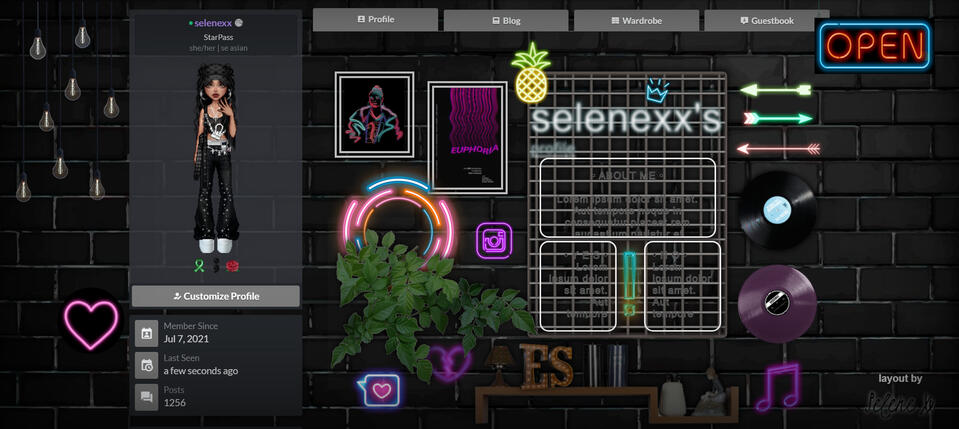 - 1 OUTFIT GALLERY (can fit 6 ouftits)(profile GIF can be found here)